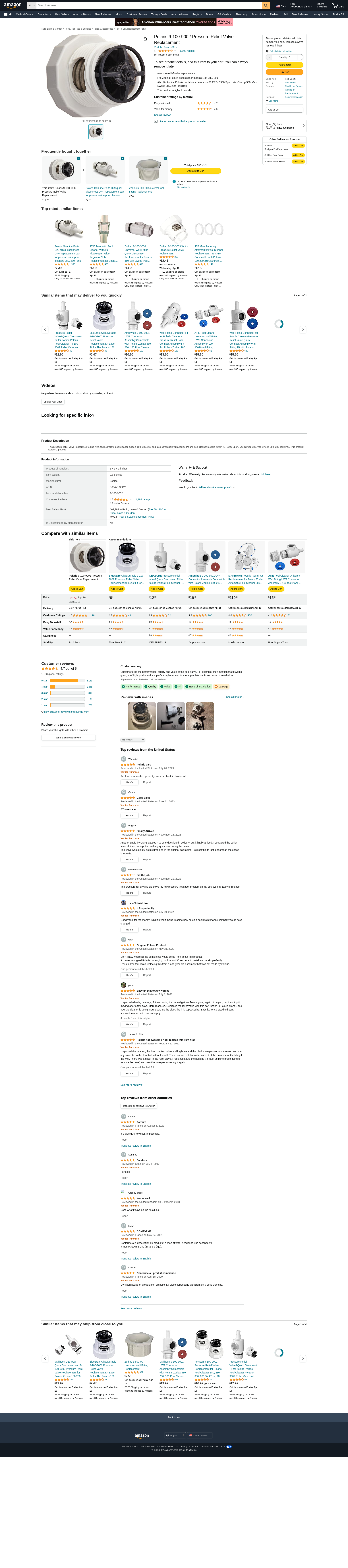 The POLARIS PRES.RELIEF VALVE is manufactured by Zodiac Pool Systems and has the part number of 9-100-9002 / 9-100-9002