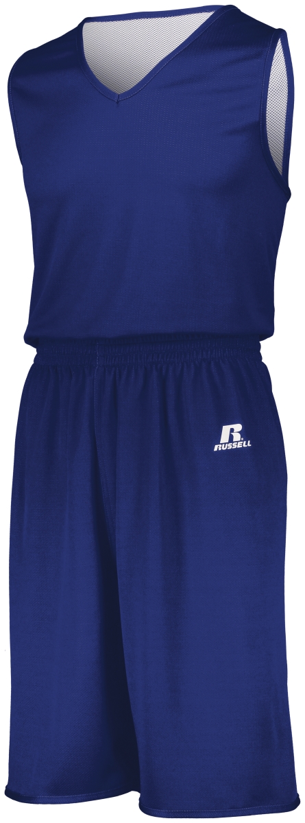 Russell 5R8DLB.ROW.L Youth Undivided Solid Single Ply Reversible Shorts, Royal & White - Large