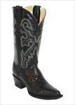 Ferrini boots are handcrafted with superb attention to detail These Ferrini cowgirl boots features a genuine black Teju lizard leather foot under an embroidered 12" leather shaft. Leather lining. Undershot walking heel. Single stitched welt. Easy-on pull straps with lizard leather overlays and updated snip toe profile. Imported. Foreign restrictions apply.