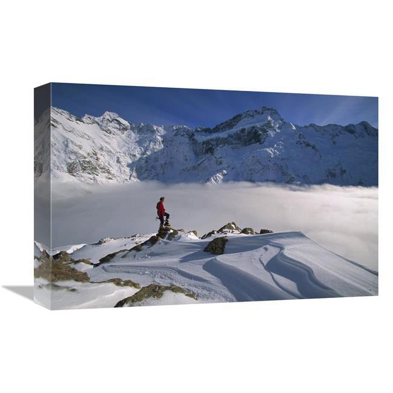 Global Gallery GCS-453456-1218-142 12 x 18 in. Mt Sefton, Climber Above Cloud-Filled Mueller Glacier, Mt Cook NP