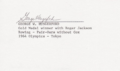 George Hungerford Autographed Olympic Canadian Rower 3x5 Inch Index Card - 1964 Gold Olympic Medalist