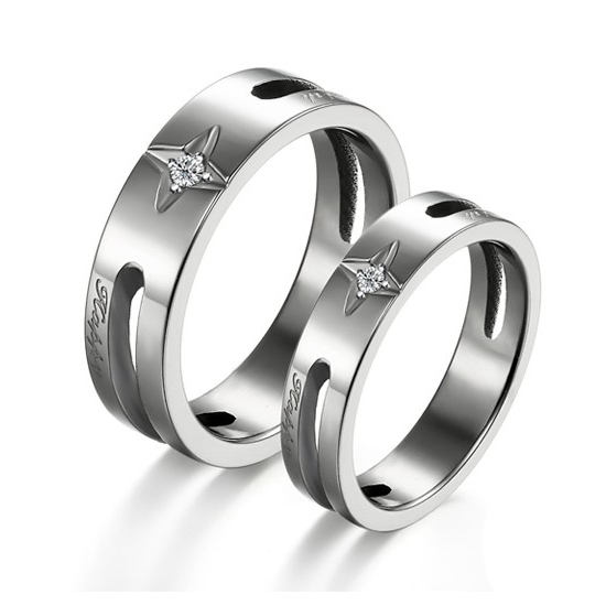 CET Domain SZ17-R086W-8 Titanium Steel Cubic Zirconia Star Couple Rings- Women-Size 8