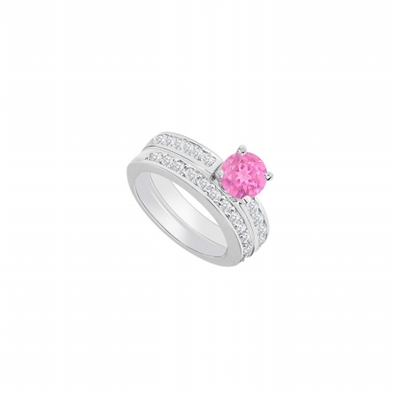 Fine Jewelry Vault UBJS297ABW14DPSRS4.5 14K White Gold Pink Sapphire & Diamond Engagement Ring with Wedding Band Set,