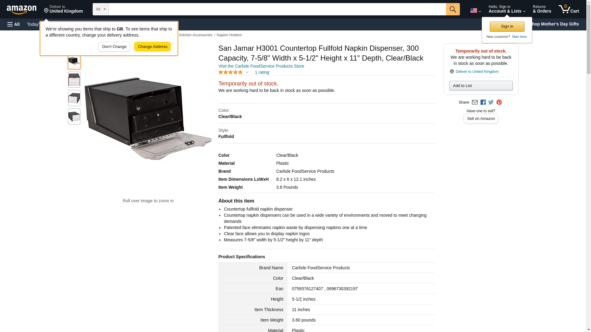 SAN JAMAR, DISPENSER NAPKIN HOLDS 300 6.5 1-1 COUNT, Manufacturer Part Number: H3001CLBK