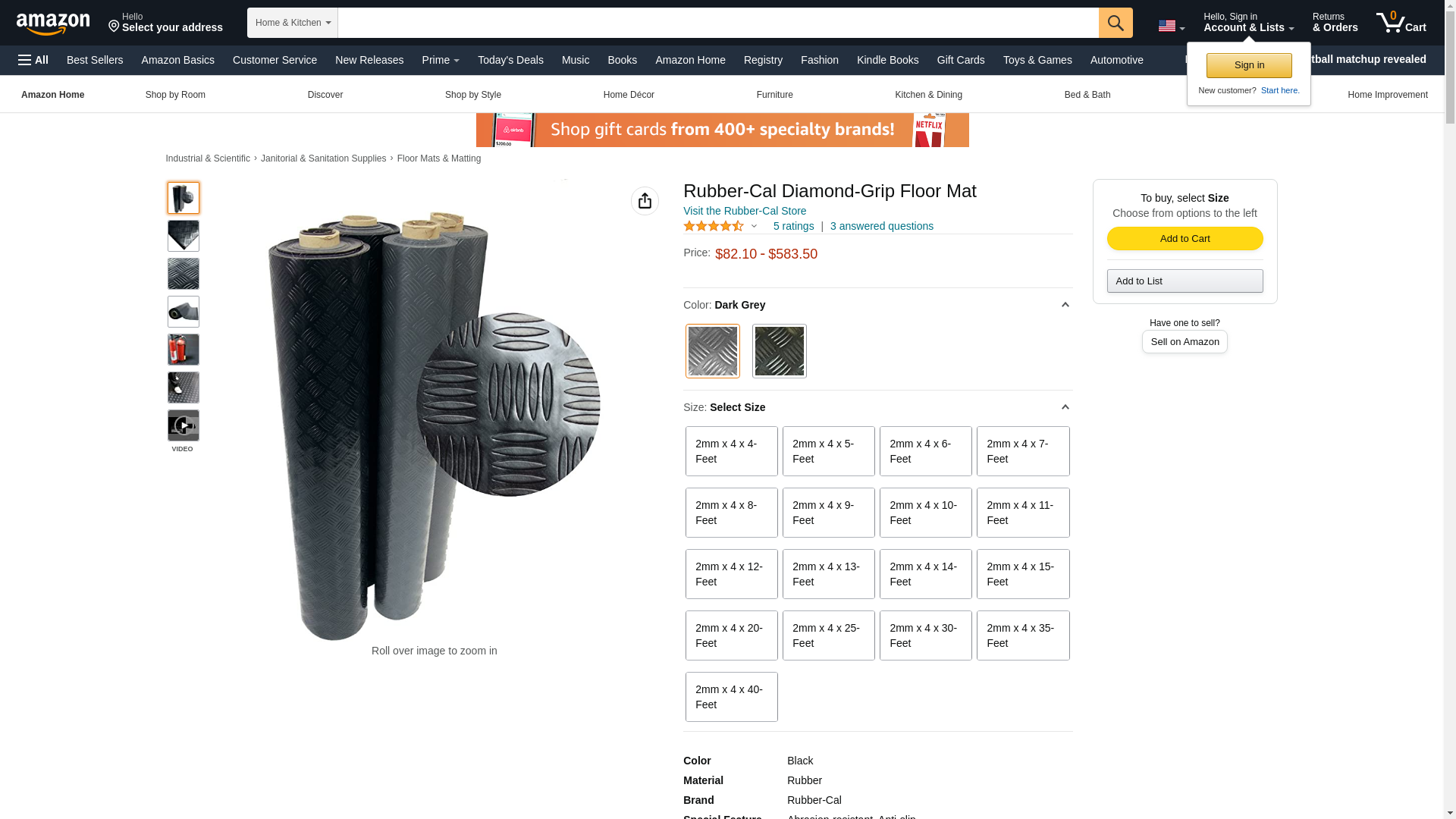 Rubber-Cal Diamond-Grip Floor Mat, Dark Grey, 2mm x 4 x 7-Feet