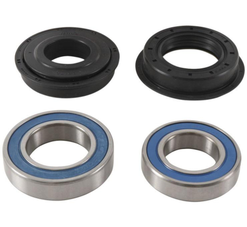 - Contains all the bearings and seals required to re-fit a wheel | Bearings are a premium EMQ quality, high speed bearing featuring low drag, triple lip rubber seals to provide superior exclusion of water and dirt and improved grease retention | Steel garter spring on the seal guarantees constant pressure on the axle shaft over the life of the seal