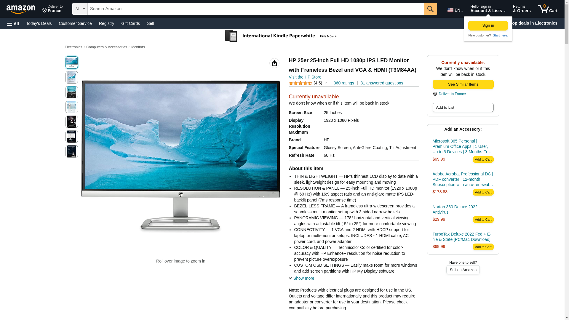 HP 25er 25-Inch Full HD 1080p IPS LED Monitor with Frameless Bezel and VGA & HDMI (T3M84AA)