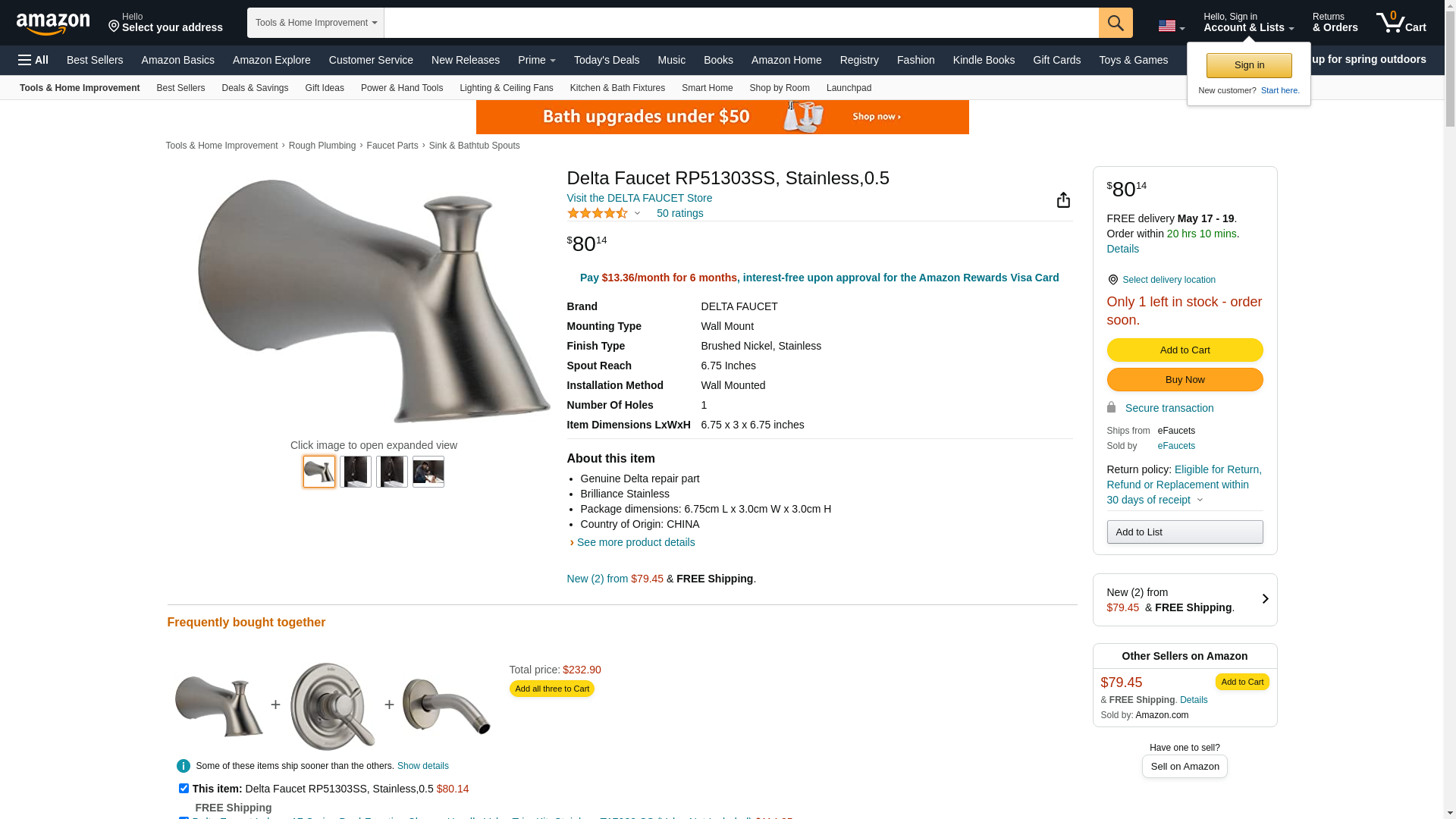 | northshorefaucets.com | RP51303SS | 1 | 1 | 1 @ $80.68 | |