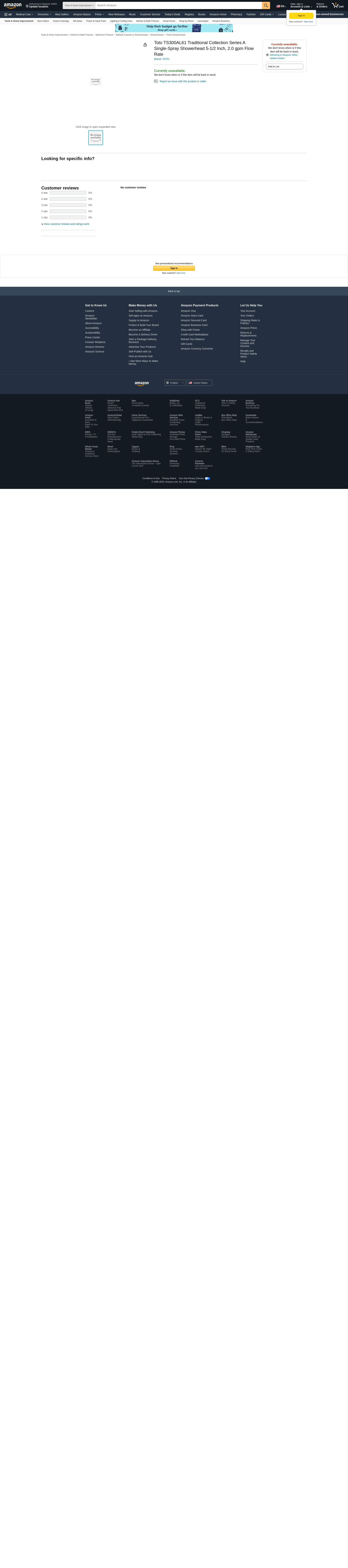Toto TS300AL61 Traditional Collection Series A Single-Spray Showerhead 5-1/2 Inch, 2.0 gpm Flow Rate Classic, clean design. Features rubber nozzles. Flow rate of 2.0 gpm. Single-Spray Showerhead 5-1/2" Maximum Flow Rate of 2.0 gpm Rubber Nozzles G 1/2 Connection Shower Arm Sold Separately Product Features: Maximum flow rate of 2.0 gpm Rubber nozzles to prevent limescale build up G 1/2" connection Available Finishes: Brushed Nickel: TS300AL61#BN Polished Chrome TS300AL61#CP Polished Nickel TS300AL61#PN Specifications: Flow Rate: 2.0 GPM Shower Head Height: 3.0625"" Shower Head Width: 5.3125"" Weight: 1 lbs. SKU: TS300AL61#BN TS300AL61#CP TS300AL61#PN TS300AL61BN TS300AL61CP TS300AL61PN"
