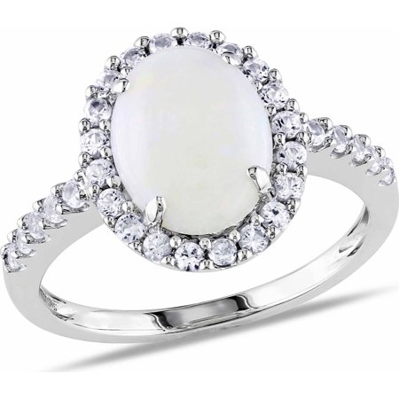 <br /> <b>2-1/4 Carat T.G.W. Oval-Cut Opal and Created White Sapphire 10kt White Gold Halo Ring:</b> <ul> <li>Crafted in 10kt white gold</li> <li>2-1/4 ct. total gemstone weight</li> <li>Oval and round-cut stones</li> <li>High-polish finish</li> <li>Prong and buttercup-set stones</li> </ul> <p>Every piece of Walmart jewelry passes rigorous inspection at our Quality Assurance labs. So you can buy with confidence ? guaranteed. <spanclass=text2bold> <a href="http://learn.walmart.com/Beauty/Articles/Jewelry_Quality_Guarantee/20636/">Learn More</a> <br /> </spanclass=text2bold></p>