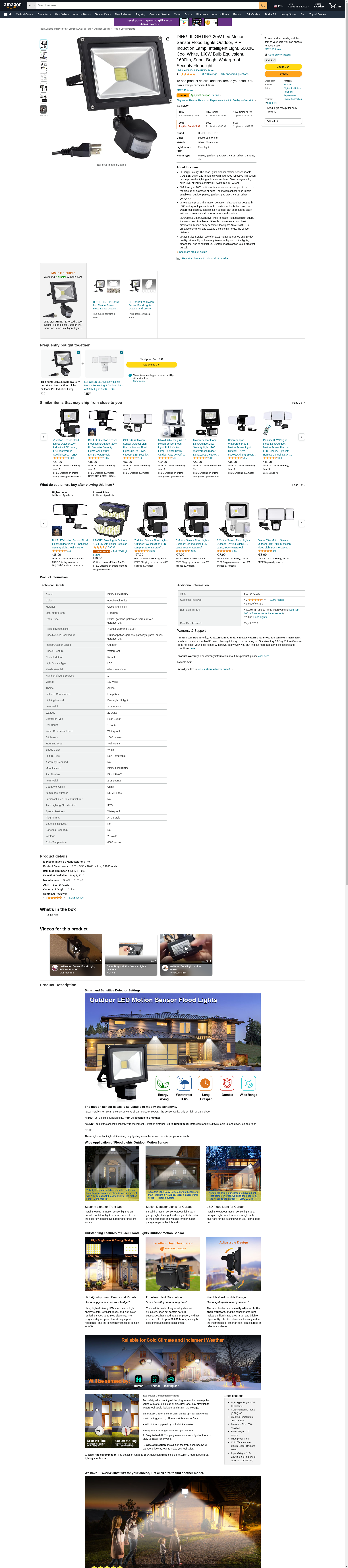 - đăEfficient Cooling & Long Lifespană: The shell of our led flood light outdoor is made of high-quality die-cast aluminum, which has good heat dissipation, prolonging the service life. This security flood light with motion sensor has more than 50000 hours (22years with 6 hours/day) lifespan, Saving labor cost to replace bulbs with a short lifespan.