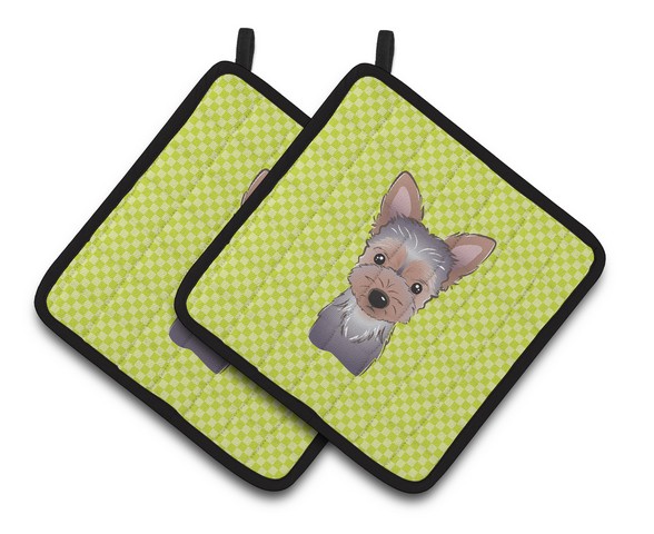 Carolines Treasures BB1294PTHD Checkerboard Lime Green Yorkie Puppy Pair of Pot Holders, 7.5 x 3 x 7.5 in.