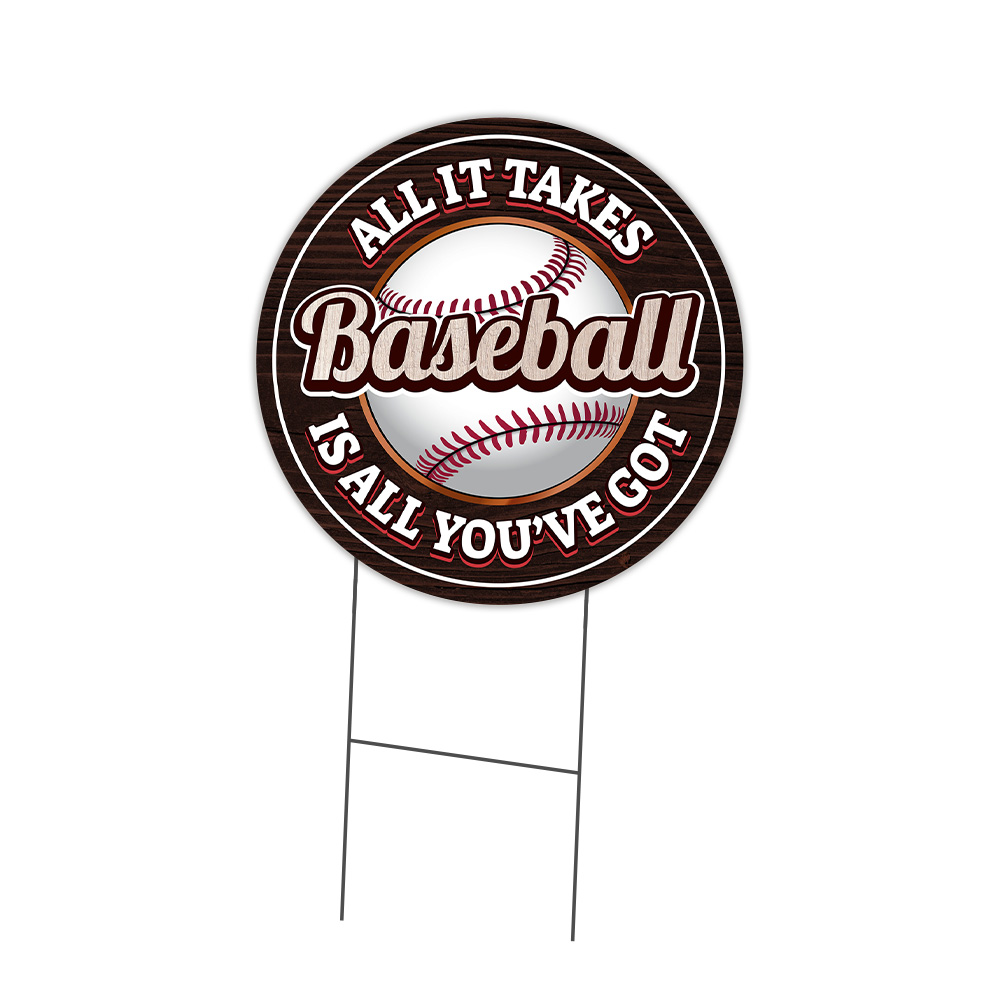 Corrugated Plastic Sign With Stakes 24in Circular-Baseball