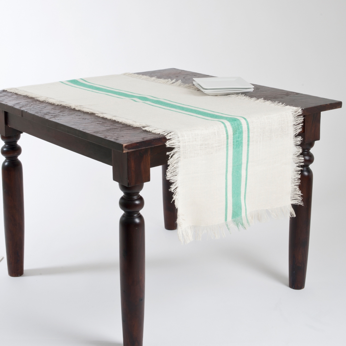 SARO JU190.SE2090B 20 x 90 in. Rectangular Striped Design Jute Table Runner - Sea Green
