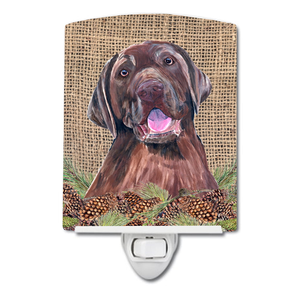 Carolines Treasures SC9039CNL Labrador Faux Burlap & Pine Cones Ceramic Night Light