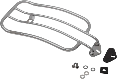 Bigger and beefier luggage rack that still maintains style.<br> Outside rails made of heavy 1/2in. tubing; inside rails are 3/8in. solid steel.<br> Measures approximately 14in. long x 7in. wide.<br> Available in chrome, matte black or gloss black finish.<br> Made in the U.S.A..