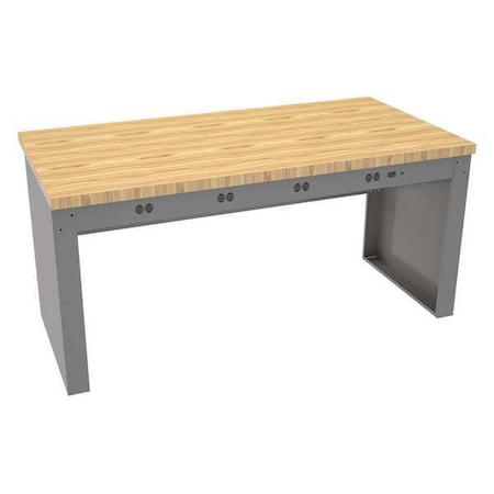 72''w x 30''d x 333/4''h Tennsco ''industrial'' desk is designed with with heavyduty steel panel ends for years of use. The rigidity of the unit is insured with the rear stringer that ties the ends together.The 13/4'' thick hardwood butcher block top is practical and good looking.The electronic outlet panel has knockouts for four duplex receptacles. Order optional wiring kit. EB-1-3072M