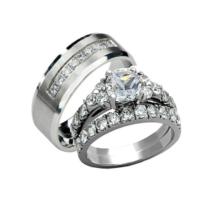 <ul> <li>3 Ring Set</li> <li>Solid Stainless Steel</li> <li>AAA Quality CZ Stones</li> </ul>