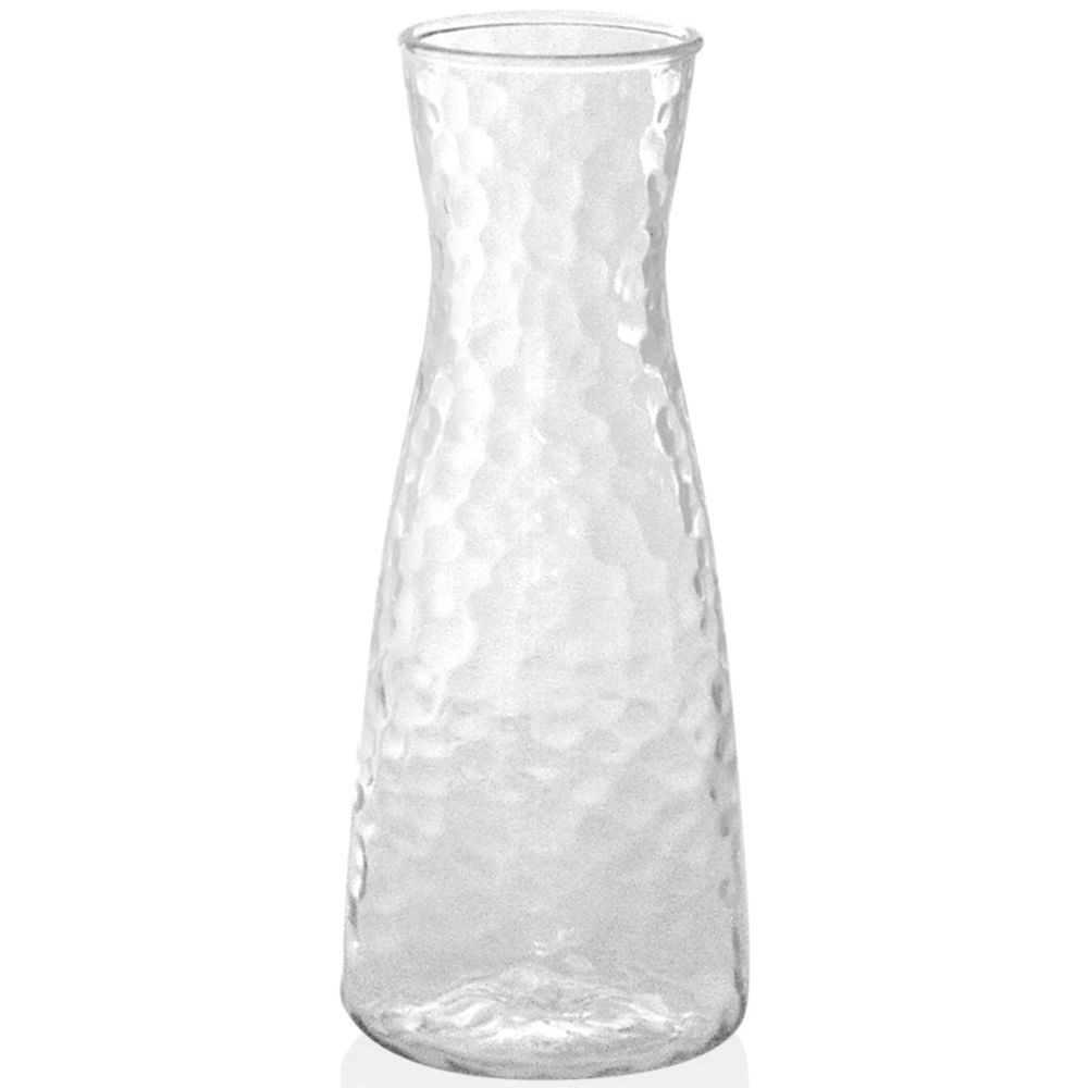 snippetThis 20 ounce carafe is heat resistant up to 248 degrees making it good for hot liquids. The pourer is crack and impact resistant. This 20 ounce carafe has a pebbled texture.