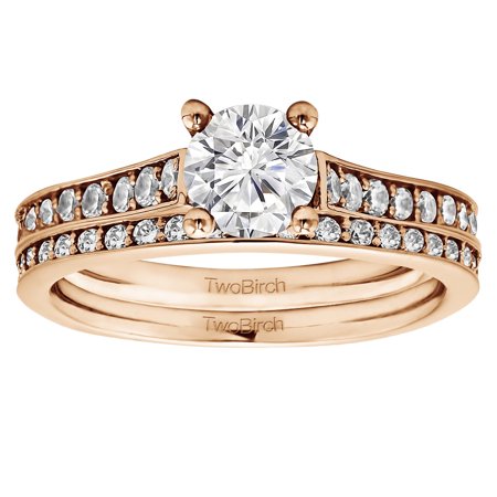 <ul> <li>Engagement Ring sets are made to fit together perfectly.</li> <li>The ring is set with 1.73 carats of Round stones Diamonds (G-H,SI1-SI2)</li> <li>Item in image is smaller than it appears. It is enlarged to show details.</li> <li>This ring is available in 10K Gold, 14k Gold and sterling Silver. Click TwoBirch above to see it in all of its variations.</li> </ul>