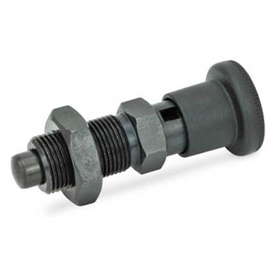 GN 817.1 Series Steel Lock-Out Type Metric Size Indexing Plunger with Multiple Pin Lengths, with Lock Nut, M8 x 1.0mm Thread Size, 16mm Thread Length, 12.5 lbs. Spring Load End