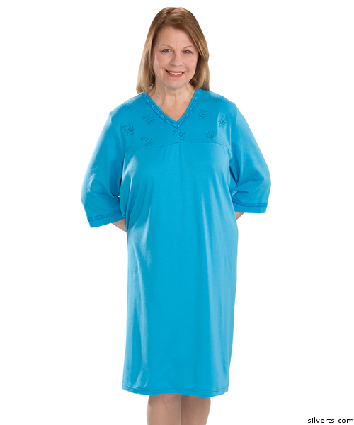 Silverts 260400103 Womens Adaptive Hospital Attractive Patient Gowns, Sea Blue - Large