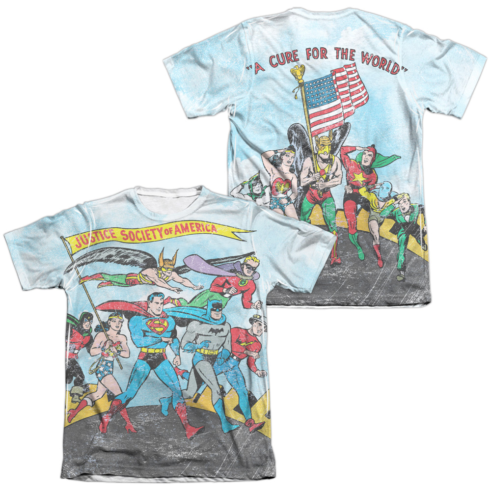 Trevco JLA578FB-ATPC-2 JLA & World Cure Front & Back Print Adult Regular Fit Short Sleeve T-Shirt, White - Medium