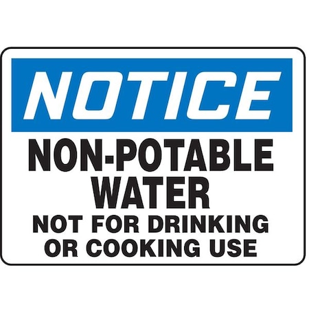 Accuform MCAW805VS Sign, Legend "Notice Non-Potable Water NOT for Drinking OR Cooking USE", 10" Length x 14" Width x 0.004" Thickness, Adhesive Vinyl, 10" x 14", Blue/Black on White