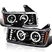Spec-D Tuning Slick Black Clear LED Halo Projector Headlights Compatible with 2004-2012 Chevy Colorado, 2004-2012 GMC Canyon Left + Right Pair Headlamps Assembly