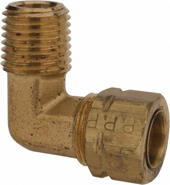 | Feature | Price For: Each Fitting Connection Type: Compression x MNPT Tube Fitting Material: Brass Basic Fitting Material: Metal Basic Fitting Shape: Elbow Item: Male Elbow, 90 Degrees Specific Fitting Shape: 90 Degrees Elbow Temp. Range: -65 Degrees to 250 Degrees F Max. Pressure: 1000 psi Tube Size: 3/8" Pipe Size (Fittings): 1/4" Compression Thread Size: 1/4" |
