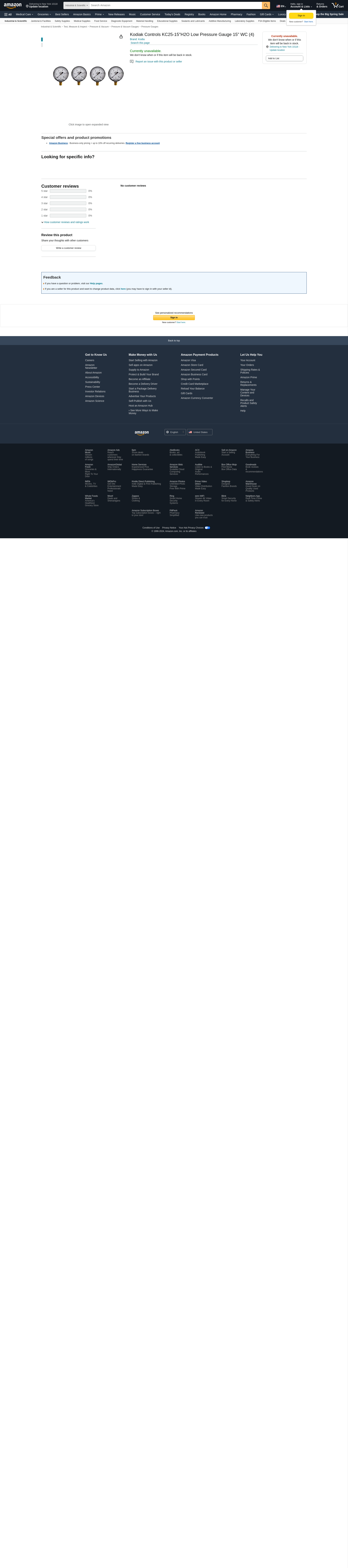Kodiak Controls KC25-15"H2O Low Pressure Gauge 15" WC (5-(Pack))