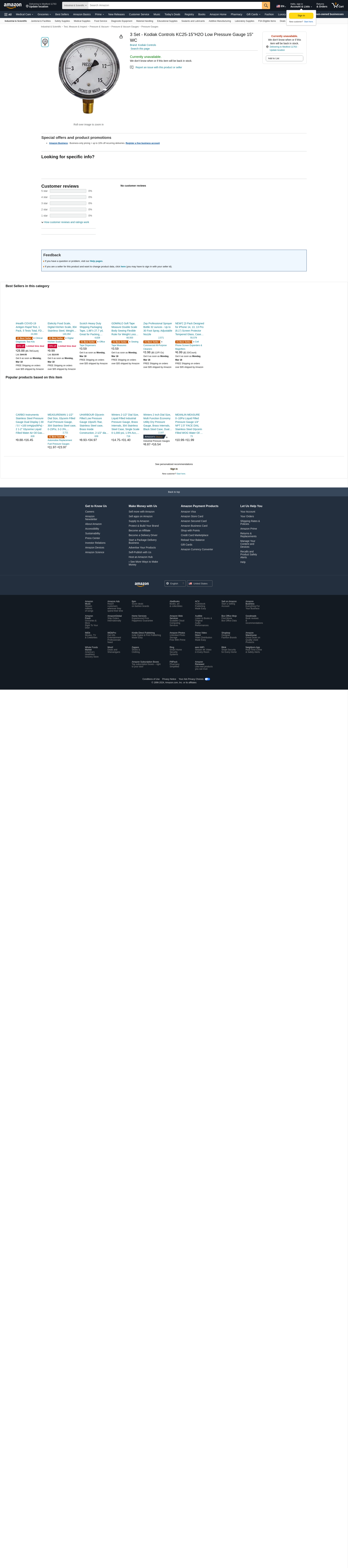 3 Set - Kodiak Controls KC25-15"H2O Low Pressure Gauge 15" WC