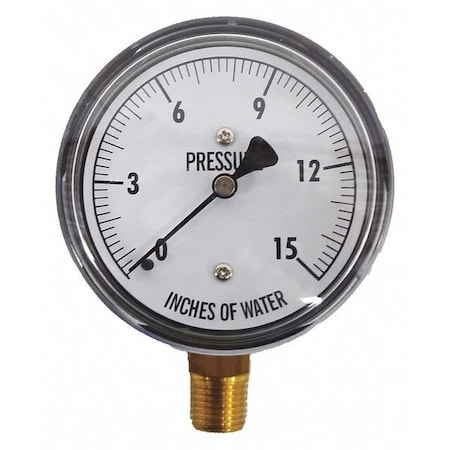 Low Pressure Gauge,Bottom,15 In. H2O