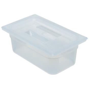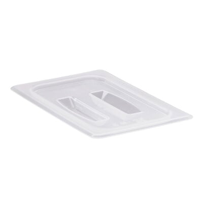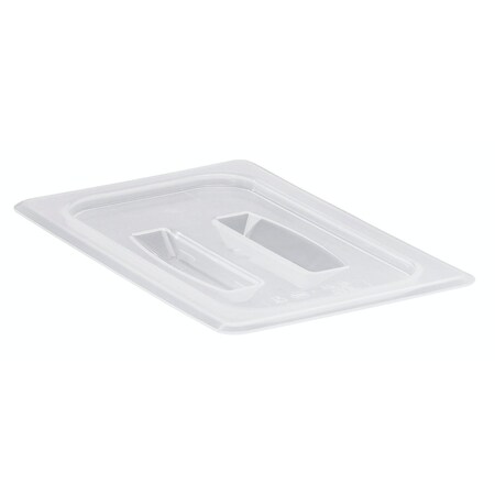 This 1/4 size food pan cover with handle is made of polypropylene material. It's used to cover food pan contents and reduce risk of .<br>Model #: 40PPCH190Translucent Material for VisibilityMolded‐In HandleTemperature Range: ‐40°F to 160°FNon‐Stick Smooth SurfaceDishwasher SafeConforms to HACCP Guidelines