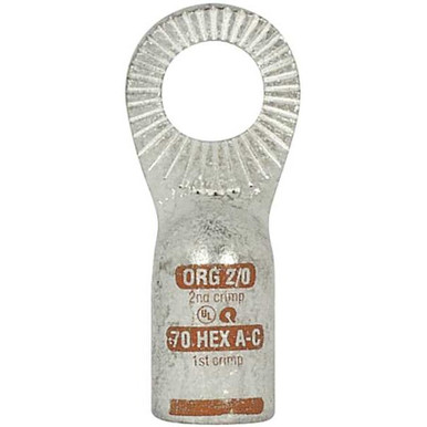 - <b>Price For:</b> Each <b>Connection Material</b>: Copper <b>Color</b>: Orange <b>Connection Type</b>: Crimp <b>Stud Size</b>: 1/2" <b>Standards</b>: UL Listed, cUL Listed <b>Item</b>: One-Hole Lug Compression Connector <b>Includes</b>: Fasteners <b>Gauge</b>: 2/0 <b>Country of Origin (subject to change)</b>: United States