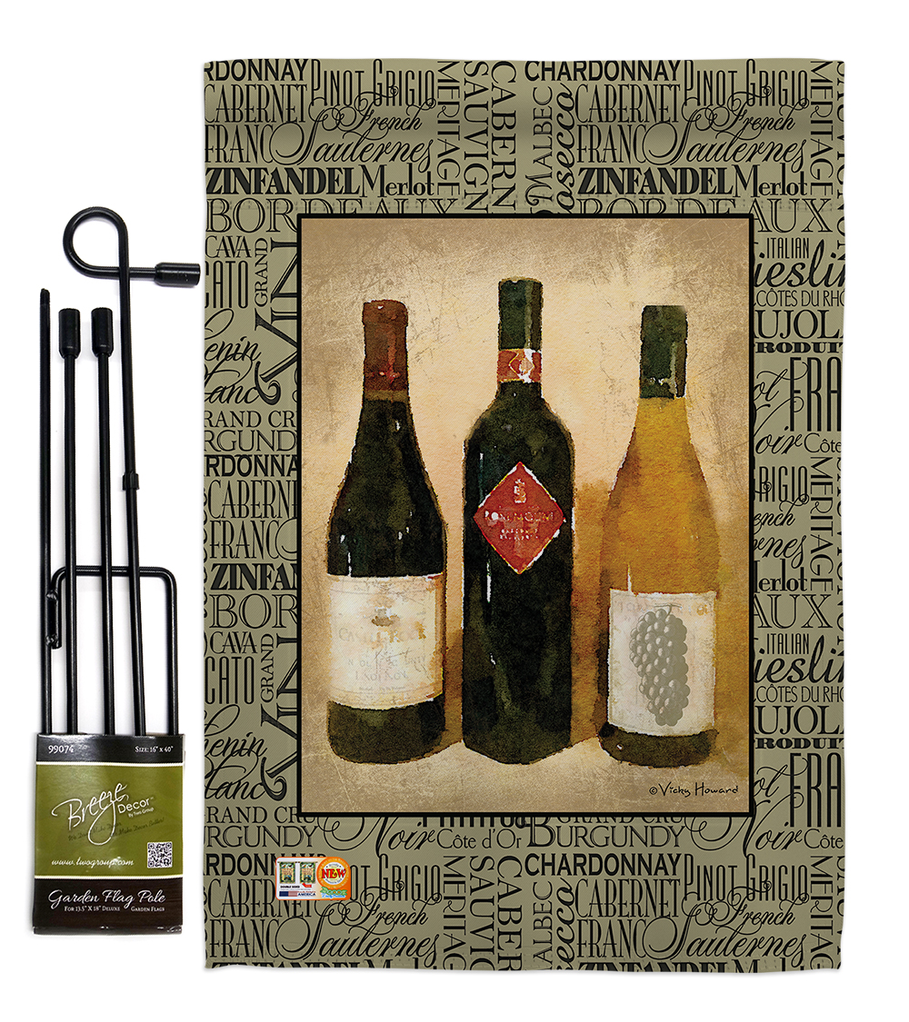 Wine Beautiful Mini Garden Flag with Metal Garden Banner Pole Stand Complete Set For more than a decade we have been dedicated to manufacturing flags with no comparison in quality and beautiful designs Our flags are made with our Pro Guard material that is soft to the touch and designs can be read correctly on the flag A feature that our customers will love We are committed to using ecofriendly inks that wont leave a foot print in our environment Breeze Decor have variety of Garden Flag Set for all occasions Uniquely design for hanging indoor or outdoor use We are committed to offering you exceptional values Our customers enjoy displaying our Garden Flag Set for longer periods Includes. 1 pc x Mini Garden Flag 13 x 185. 1 pc x 40 4 Pieces Breaks Down Metal Yard Banner StandSpecifications. Theme Wine. Garden Flag Set Size 13 x 185. Breaks Down Garden Flag Pole Size 16 x 40. Print DoubleSided. Readable Readable Both Sides. Material Weather Resistant 3 Layers Blockout. Stitching Double Stitched. Display Vertical. Hang Type Sleeve. Artist Vicky Howard. Country of Origin USA. Weight 109 lbs