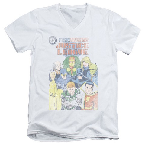 Trevco Jla-Justice League No. 1 Cover Short Sleeve Adult V-Neck 30-1 Tee, White - 2X