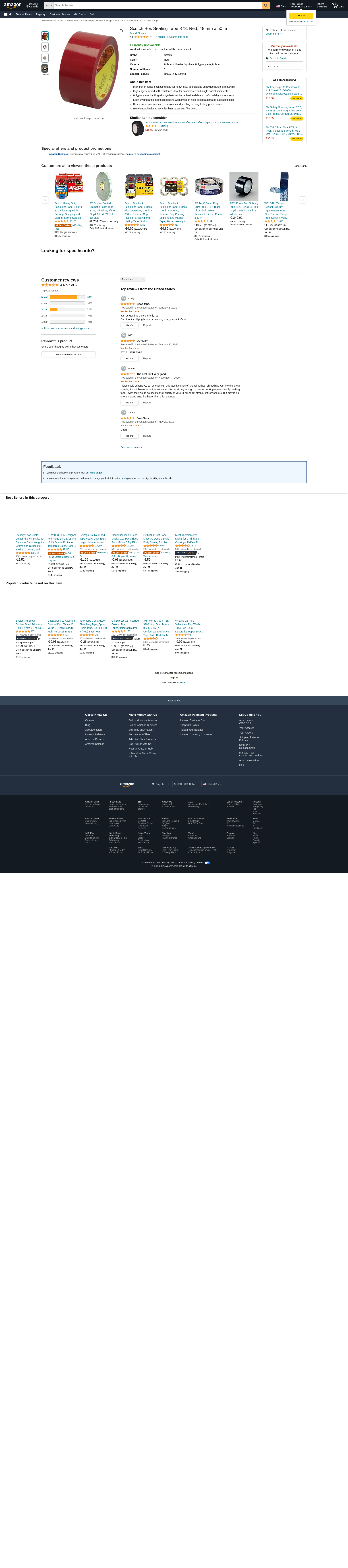 Scotch Box Sealing Tape 373 Red, 48 mm x 50 m, High Performance, Conveniently Packaged (Pack of 1). Adhesive sticks q...