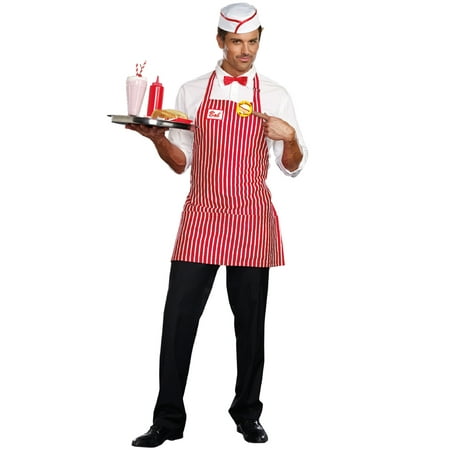 Customers came from miles around, because they heard he had the best wiener in town. Serve up a good laugh at the party in this 50's styled striped apron with bow tie, hat and "Best Wiener in Town" pin.