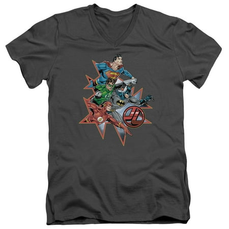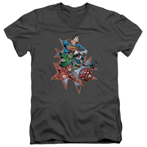 Trevco Jla-Starburst Short Sleeve Adult V-Neck 30-1 Tee, Charcoal - 2X