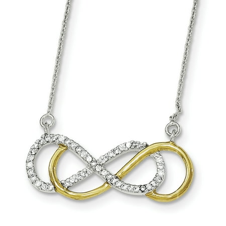 Material: Primary - Purity:925 <br />-Finish:Polished <br />-Stone Type_1:Cubic Zirconia (CZ) <br />-Stone Color_1:Clear <br />-Plating:Gold Plated <br />-Chain Length:17.5 in <br />-Chain Width:1 mm <br />-Charm/Element Length:14 mm <br />-Charm/Element Width:33 mm <br />-Clasp /Connector:Spring Ring <br />-Material: Primary:Sterling Silver <br />-Stone Treatment_1:Synthetic <br />-Product Type:Jewelry <br />-Jewelry Type:Necklaces <br />-Sold By Unit:Each <br />-Necklace Type:Themed Necklace <br />-Material: Primary - Color:White <br />-Stone Creation Method_1:Synthetic