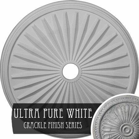 Ekena Millwork CM33LEUWC Leandros Ceiling Medallion, 33 1/8"OD x 3 1/2"ID x 1 3/8"P, Hand-Painted Ultra Pure White Crackle