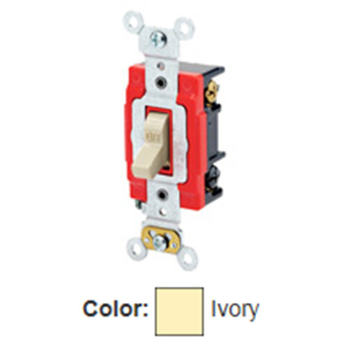 Leviton 1223-LHI - 20 Amp - 120 Volt - Toggle Lighted Handle - Illuminated OFF 3-Way AC Quiet Switch - Ivory