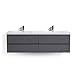 The Moreno is one of the most elegant modern Bathroom Vanities around. This 72 Inch model comes with a reinforced Acrylic sink, Marine Veneer Constructed Console that is fully moister and water proof, with high quality European DTC Hardware, that provides smooth soft-closing operation drawers. Included in the price: Marine Veneer Wood Construction Console (Water and Moister Resistant) Integrated European Soft-Closing hardware Reinforced Acrylic Composite Sink with Rectangular Chrome Overflow Aluminum Handles Installation Hardware Any Mirrors, Faucets or Pop-Drains in the pictures are NOT included in the price. Features: Four Functioning Drawers oors Cabinet comes Fully Assembled Rich Durable Finish Soft Closing Hardware on All Drawers Countertop Pre-drilled for a Single Hole Faucet Sink has Overflow Style: Modern 1 Year Manufacturer Warranty Specifications: Vanity Base Material: Marine Wood Veneer Vanity Countertop Material: Reinforced Acrylic Composite Number of Sinks Included: 2 Number of Drawers: 4 Sink Installation Type: Integrated Sink Material: Reinforced Acrylic Composite Handles Material: Aluminum Vanity Base Color/Finish: Black Wood Vanity Dimensions: Cabinet: 71.00”W x 19.5”D x 19.5”H Sink: 71.25”W x 19.75”D x 4”H Overall Dimensions: 71.25W x 19.75”D x 23.75”H * All specifications are subject to change without prior notice.