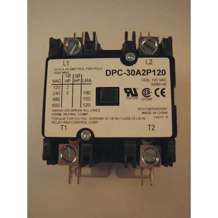 Relay & Control DPC-30A2P120 Definite Purpose Contactor, 30 amp - 2 Pole 120V