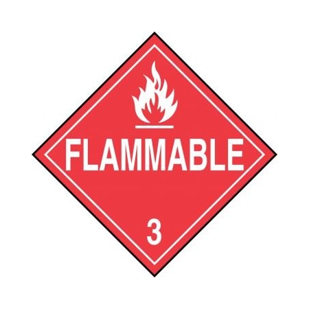 Accuform MPL301VS100 Adhesive Vinyl Hazard Class 3 DOT Placard, Legend "Flammable 3" with Graphic, 10-3/4" Width x 10-3/4" Length, White on Red (Pack of 100)