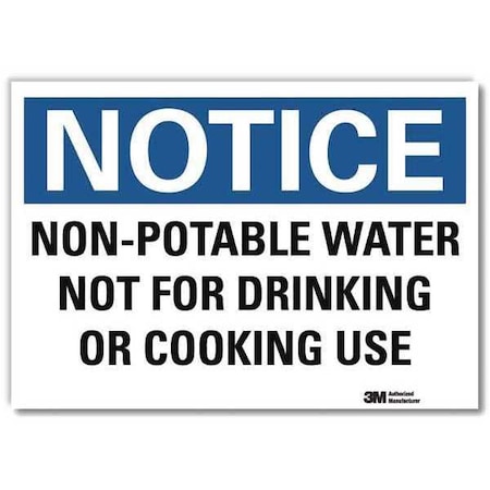 Notice Sign, Horizontal Rectangle, Number of Printed Sides 1, English, Sign Format Traditional OSHA, Sign Legend Non-Potable Water Not For Drinking Or Cooking Use, Sign Legend Background Color White, Sign Legend Style Text