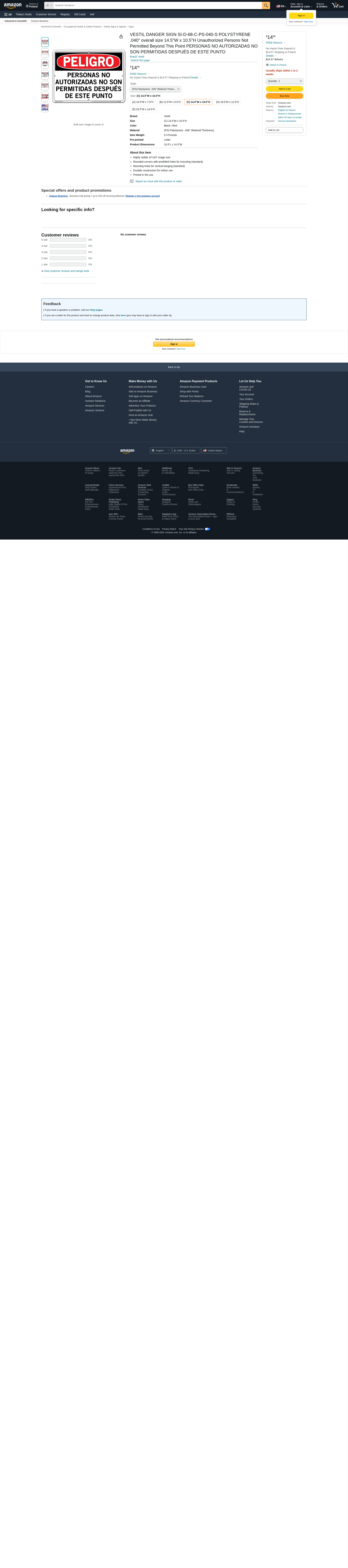 VESTIL DANGER SIGN SI-D-68-C-PS-040-S POLYSTYRENE .040" overall size 14.5"W x 10.5"H Unauthorized Persons Not Permitted Beyond This Point PERSONAS NO AUTORIZADAS NO SON PERMITIDAS DESPUÉS DE ESTE PUNTO