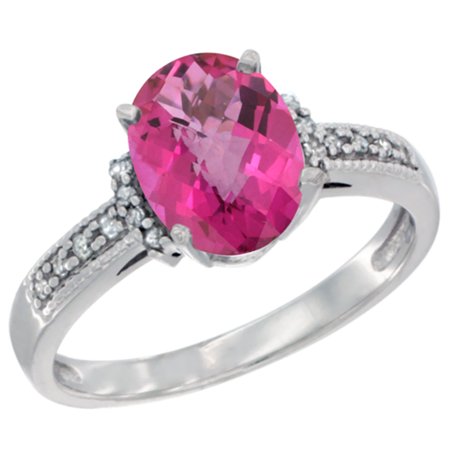 10K White Gold Natural Pink Topaz Ring Oval 9x7 mm Diamond Accent, sizes 5 - 10