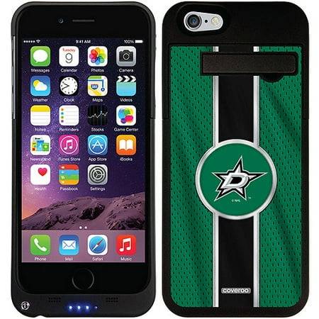 <br /> <b>Dallas Stars Jersey Stripe Design on Apple iPhone 6 Battery Case by Coveroo:</b> <ul> <li>Compatible with Apple iPhone 6</li> <li>Tough, protective 3200mAh battery case</li> <li>Provides up to 150 percent extra battery life</li> <li>Use the LED indicator to check battery levels and click the on/off switch when you want to recharge your iPhone while on the go</li> <li>Built-in kickstand is great for multimedia users</li> <li>Easy access to screen, controls, ports, plugs and camera</li> <li>Not compatible with iPhone 6 Plus</li> </ul>